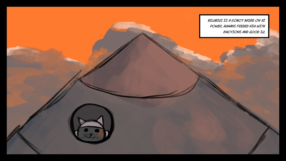 The story follows a robotic cat on a mission to find a new home planet for humanity. During its journey through the vast emptiness of space, the cat loses half of its body—its other half. Despite being mechanical, the cat thinks and feels like a human, experiencing isolation and longing as it drifts alone across the stars.